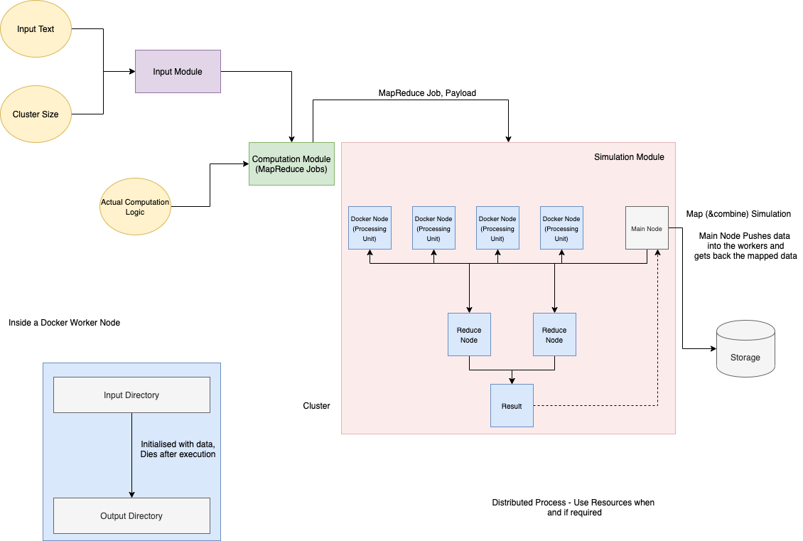 machine with multiple docker containers acting as separate nodes for map and reduce jobs. The